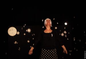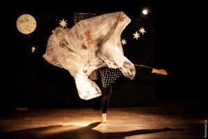Cette pièce chorégraphique raconte en mouvement et en voix l’intense besogne de madame la Lune durant sa longue nuit.